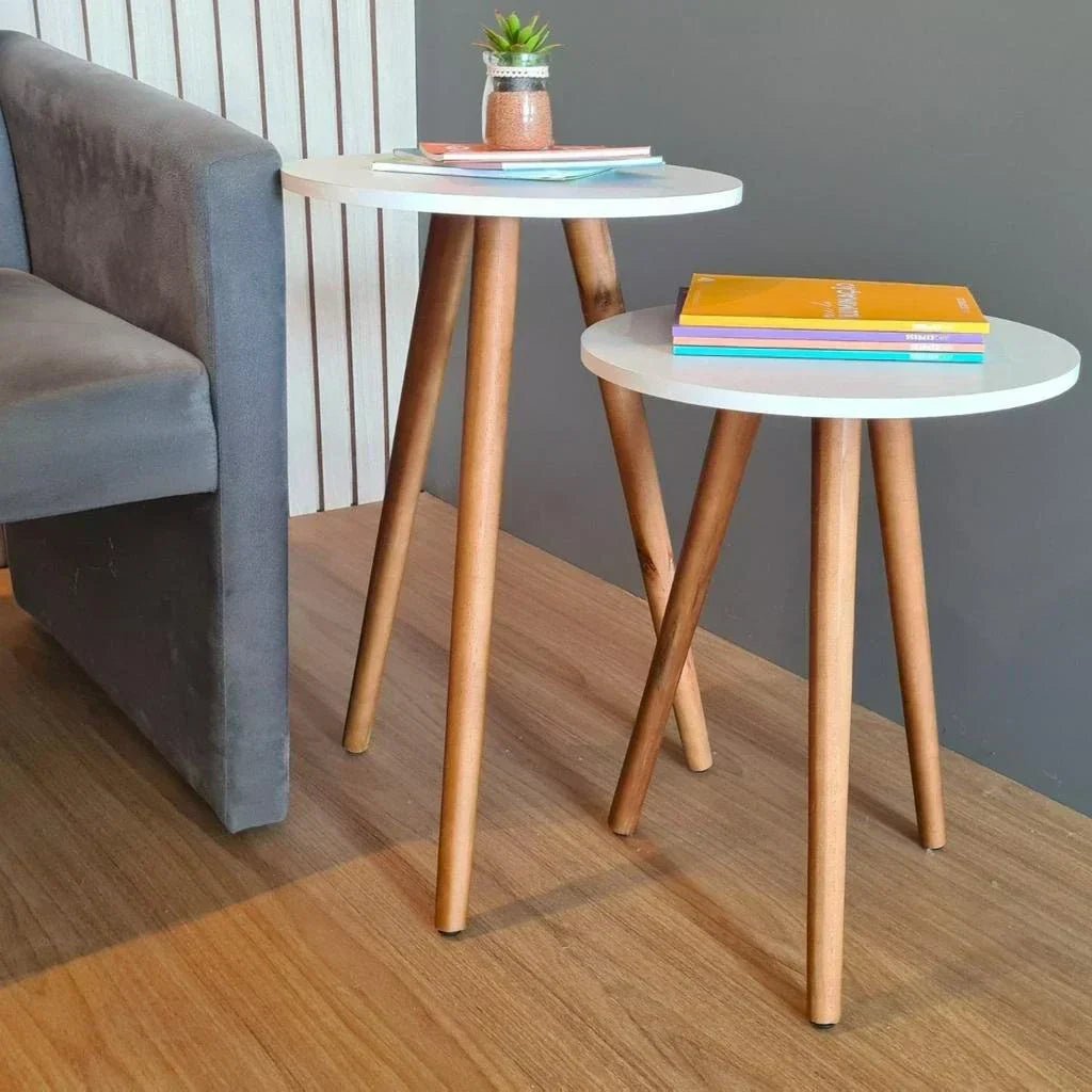Kit com 2 Mesas Laterais Redondas - Canto de Sofá
